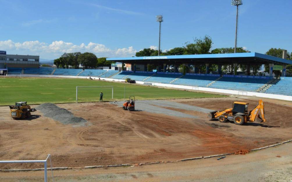 As obras de revitalização do Estádio Martins Pereira seguem em ritmo acelerado, e a novidade desta semana é o início da pintura das arquibancadas, que receberão o tradicional Azul do São José.