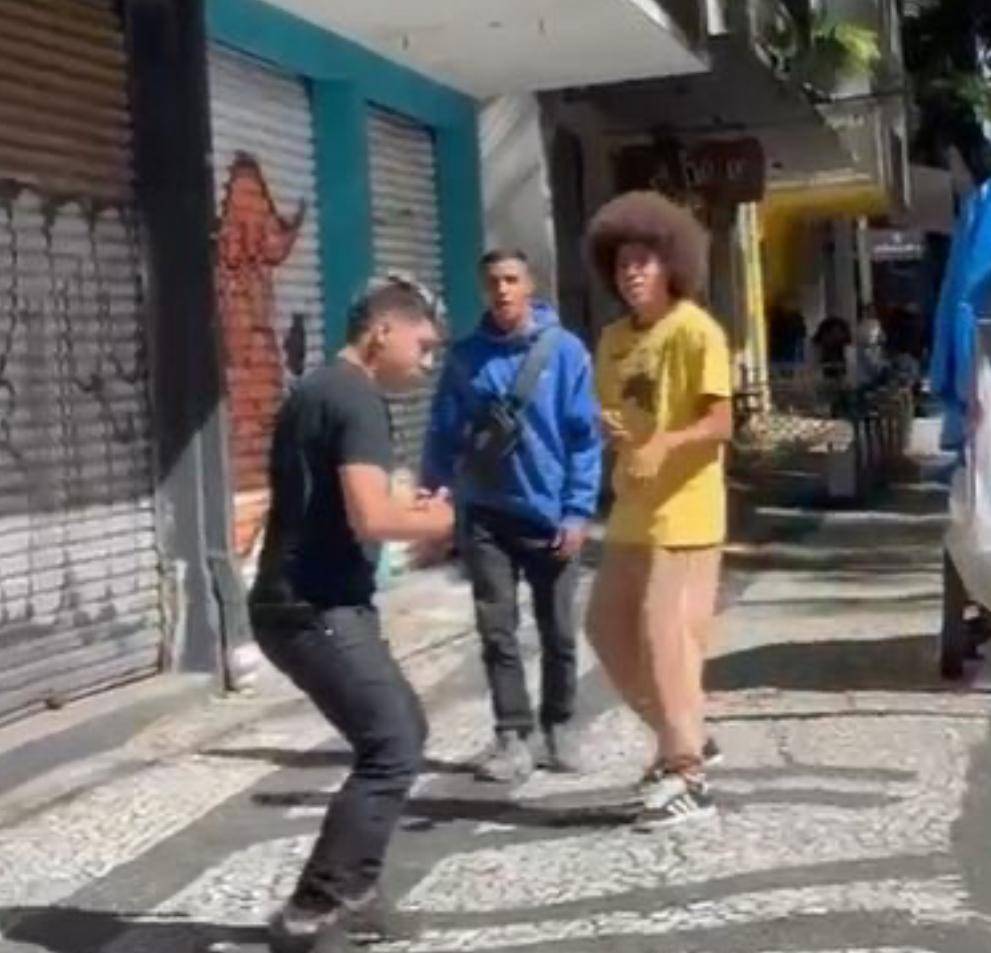 Nas gravações, Renato Freitas aparece vestindo camisa amarela, acompanhado de um homem de moletom azul, que tenta intervir na confusão. O deputado impede a participação do colega e diz: “Deixa, deixa eu”, antes de seguir para o confronto físico.