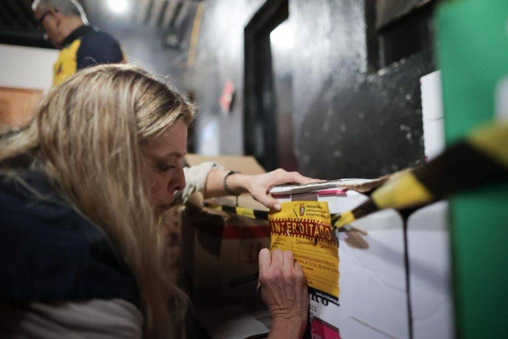 Numa das interdições nesta quinta (2), em M’Boi Mirim, houve a apreensão de seis caixas (60 garrafas) de vodka do mesmo lote apreendido na distribuidora de Barueri na quarta (1). Além disso, foram encontradas caixas abertas, rotulagem errada, e no espaço havia roedores, baratas, alimentos e água de coco vencidos e carne sem controle de temperatura.