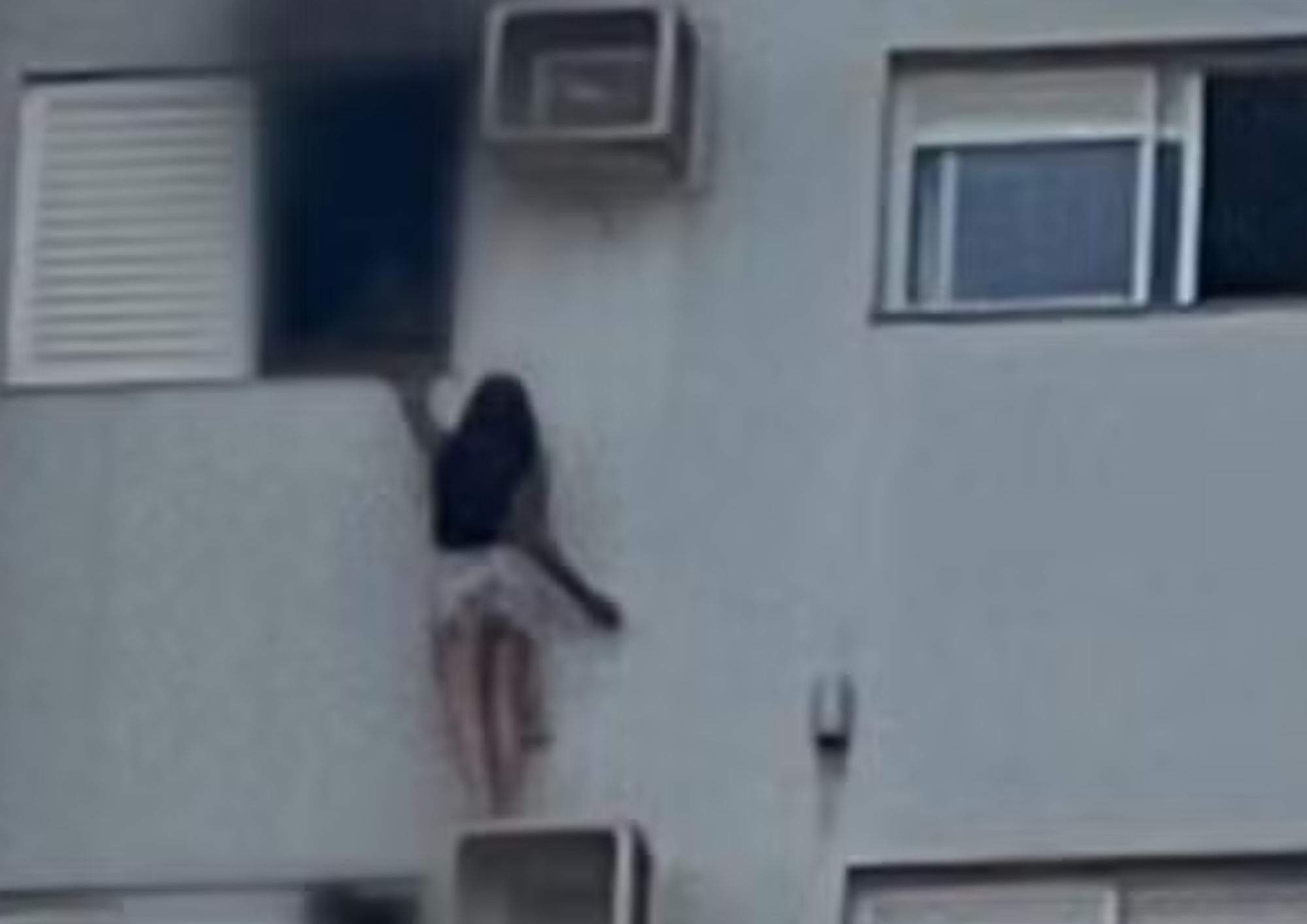 Imagens registradas por moradores mostram o momento em que a mulher fica do lado de fora do prédio, apoiada no equipamento, enquanto tenta ajudar as vítimas. Após o resgate, ela foi retirada pela janela pelos bombeiros e levada ao hospital em estado grave, com 90% do corpo queimado.