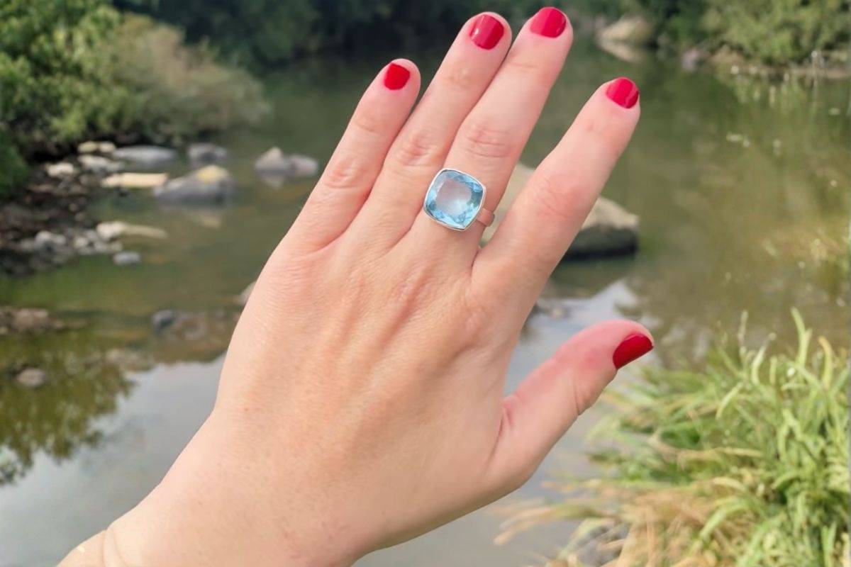 Anel de Topázio Azul que funciona no cotidiano