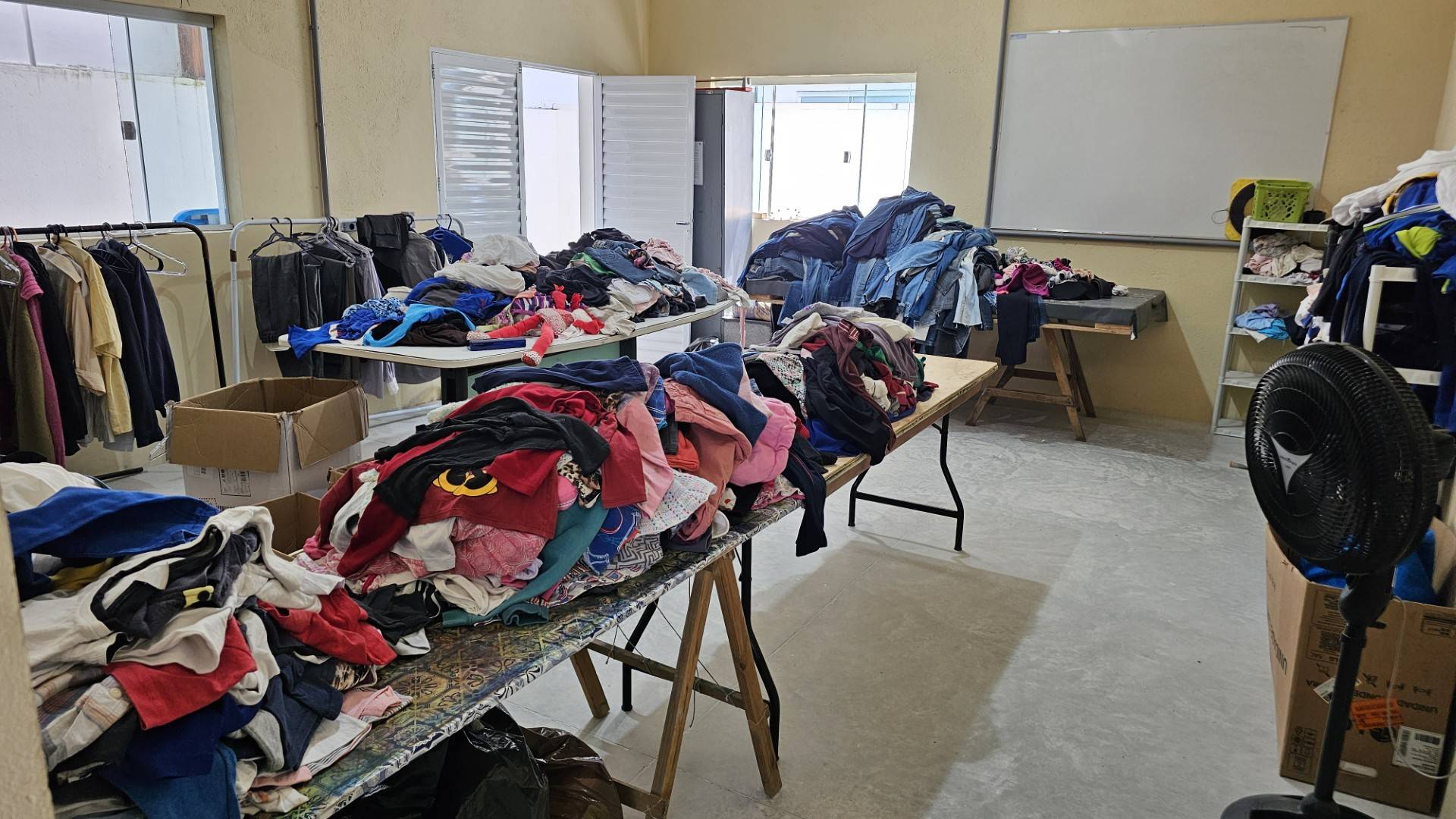 O atendimento será por ordem de chegada e a organização recomenda levar sacolas retornáveis para facilitar a retirada dos itens. As peças disponíveis incluem roupas masculinas, femininas e infantis, além de calçados e acessórios, conforme a disponibilidade no local ao longo do dia.