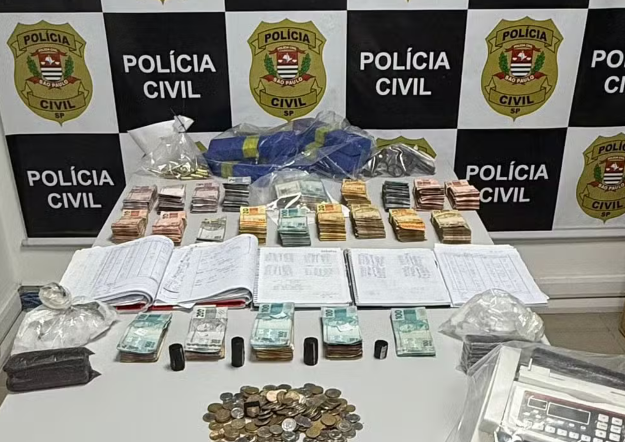 Durante a operação, foram apreendidos R$ 90.324 em espécie, oito tijolos de droga, um revólver calibre 38 com 12 munições, 50 munições de fuzil, sete celulares e outros apetrechos utilizados pelo grupo criminoso. Os detidos, de 30 e 34 anos, seriam responsáveis por parte da logística financeira e operacional da organização na região do Vale do Paraíba.