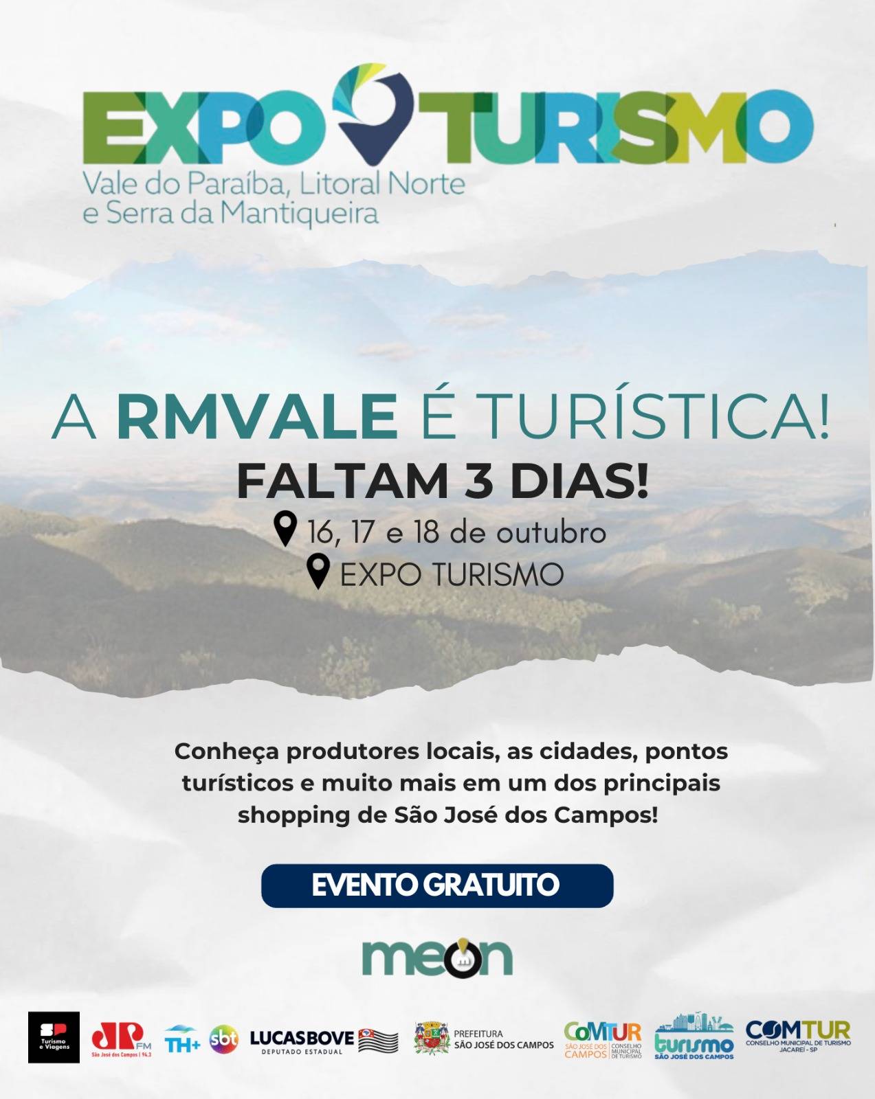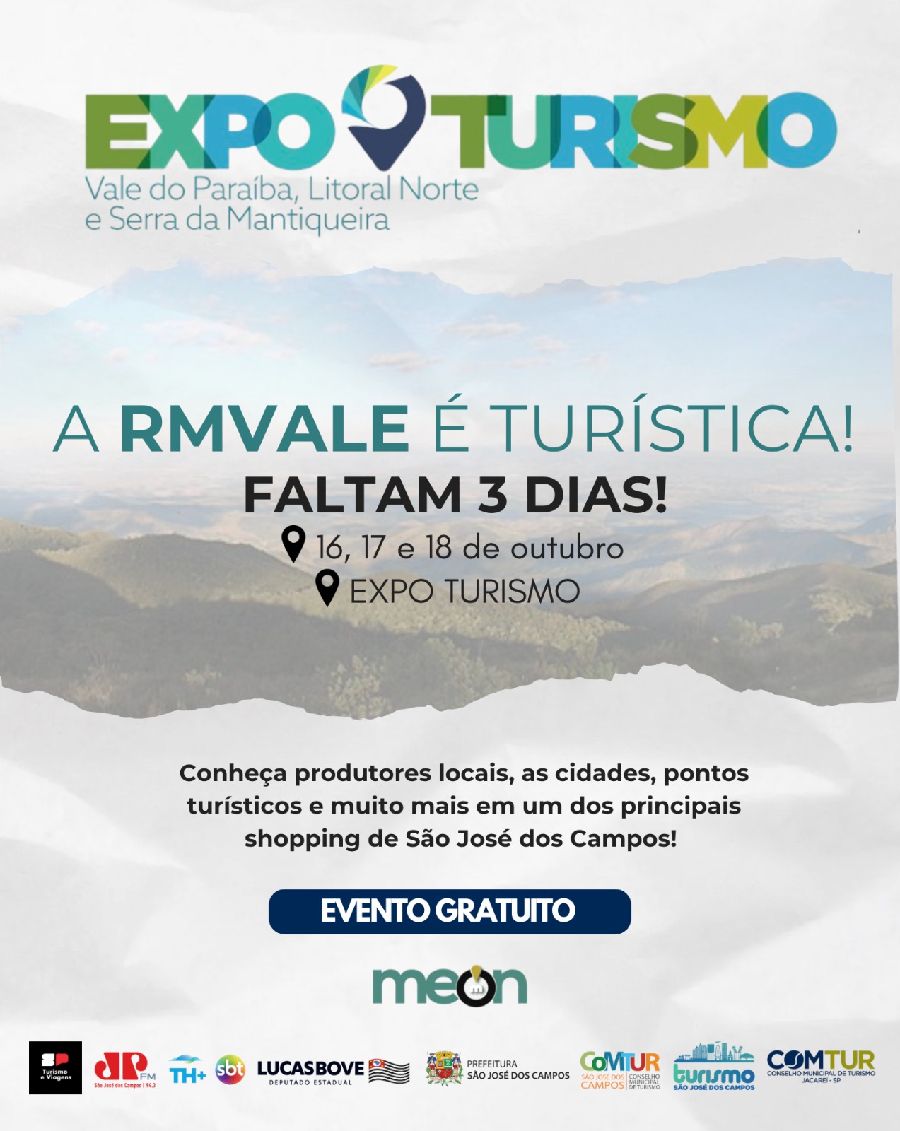 Faltam apenas três dias para o início da maior feira de turismo do Vale do Paraíba, que será realizada em São José dos Campos. O evento acontece nos dias 16, 17 e 18 de outubro, na Praça de Eventos do Vale Sul Shopping, durante todo o horário de funcionamento do centro de compras. A entrada é gratuita.