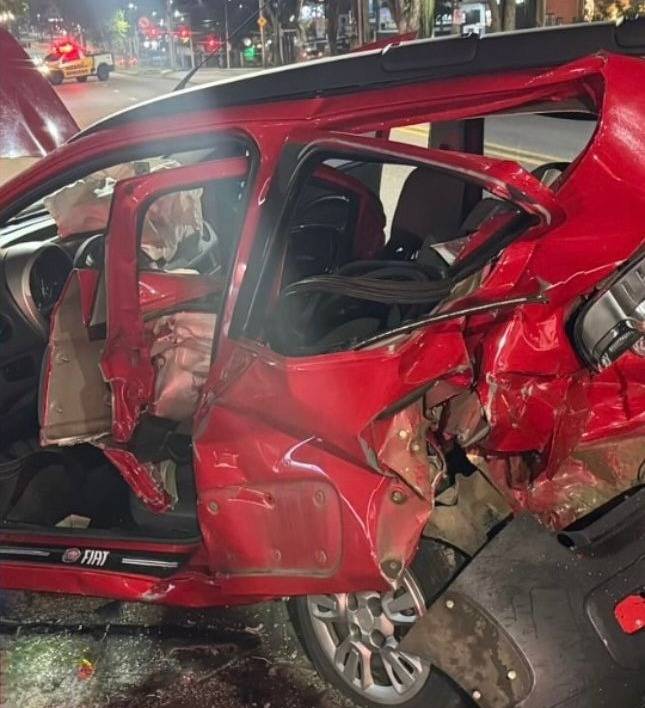 O impacto foi tão intenso que o veículo conduzido pela vítima ficou completamente destruído. Três veículos se envolveram no acidente.