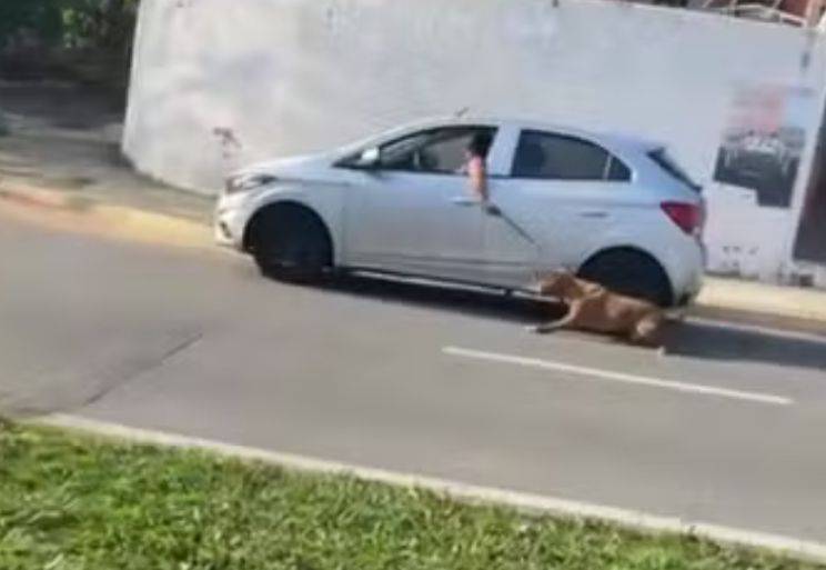 De acordo com as imagens usadas na investigação, a mulher, identificada como Maria Bomfim Clementino de Lima, dirigia pela Avenida Antônio da Costa Nunes, no bairro Campos de São José, enquanto o cachorro estava preso à coleira do lado de fora do veículo. Testemunhas relataram que o carro chegou a passar sobre a pata do animal, que ficou visivelmente ferido e sangrando.
