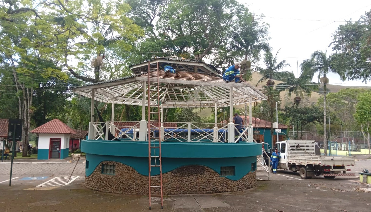 O coreto, com aproximadamente 75 metros quadrados, passa por reforma no telhado com instalação de 80 telhas ecológicas e pintura completa. O espaço é palco de eventos culturais e ponto de encontro de moradores e turistas.