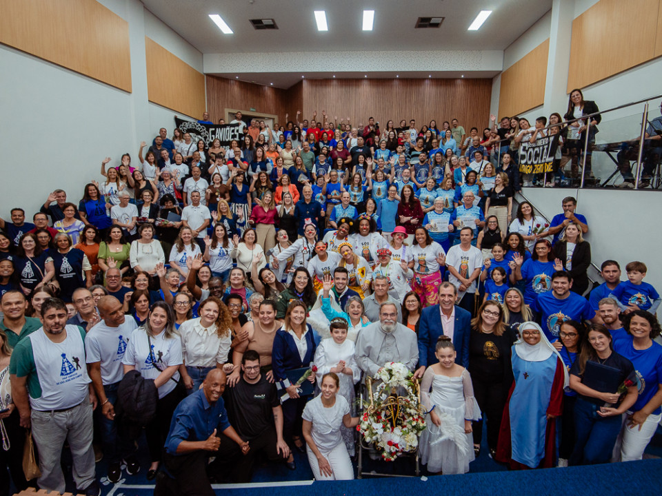 A iniciativa foi do vereador Sérgio Camargo (PL) e reuniu grande público no auditório Mário Covas. O evento teve início com uma procissão de crianças do Santuário Santa Terezinha, seguida da bênção do padre Antônio Maria, que também entoou canções durante a coroação da imagem de Nossa Senhora Aparecida.