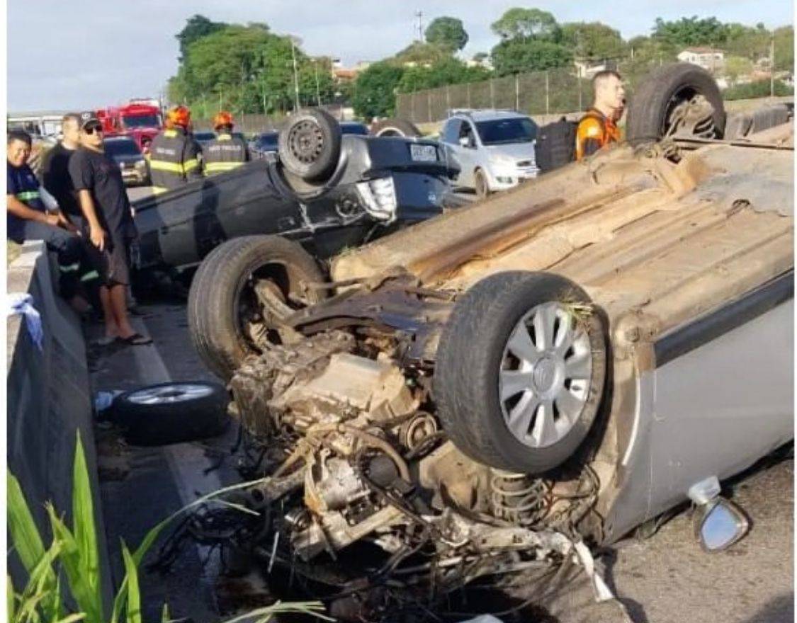 Dois carros capotaram na manhã deste domingo (9) após um acidente envolvendo uma carreta no km 146 da rodovia Presidente Dutra, em São José dos Campos, no sentido Rio de Janeiro.