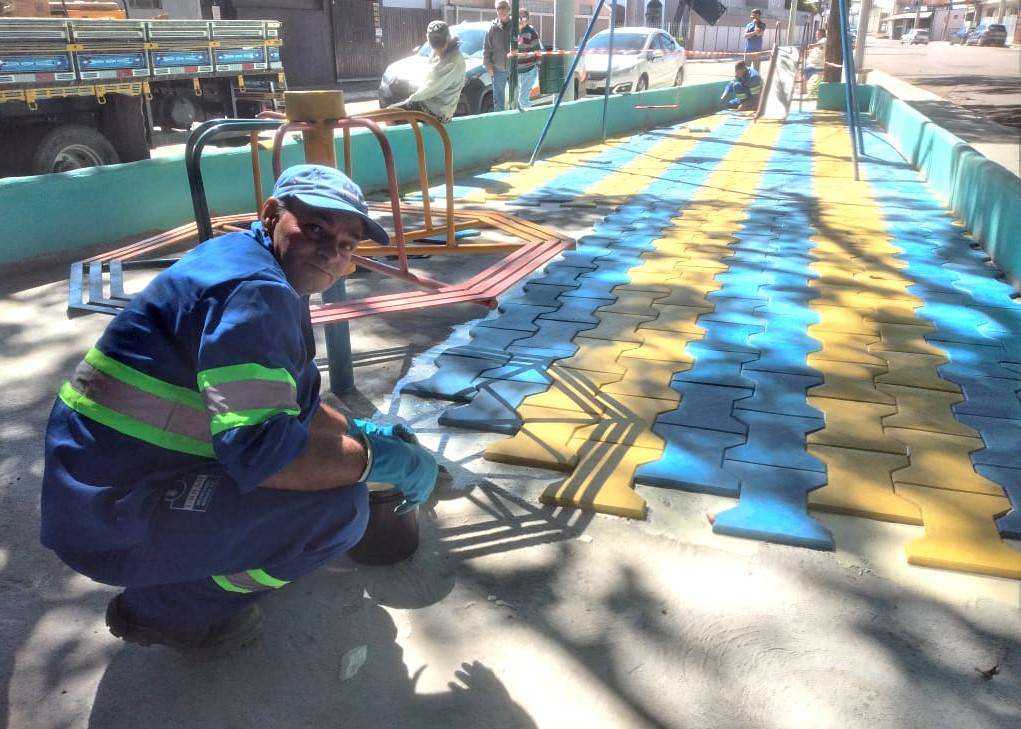 A Praça Francisco de Campos também recebeu melhorias. Foi realizado o calçamento no entorno, com a instalação de mesas de concreto e azulejos e a iluminação ornamental foi reforçada, aumentando a luminosidade no local.