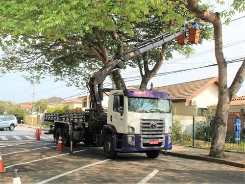 As podas de árvores seguem uma programação, uma vez que o trabalho requer técnica para garantir as funções ambientais das espécies e a segurança da população. Em alguns casos, a Prefeitura e a EDP se unem para retirar galhos que estão junto de fiações elétricas.
