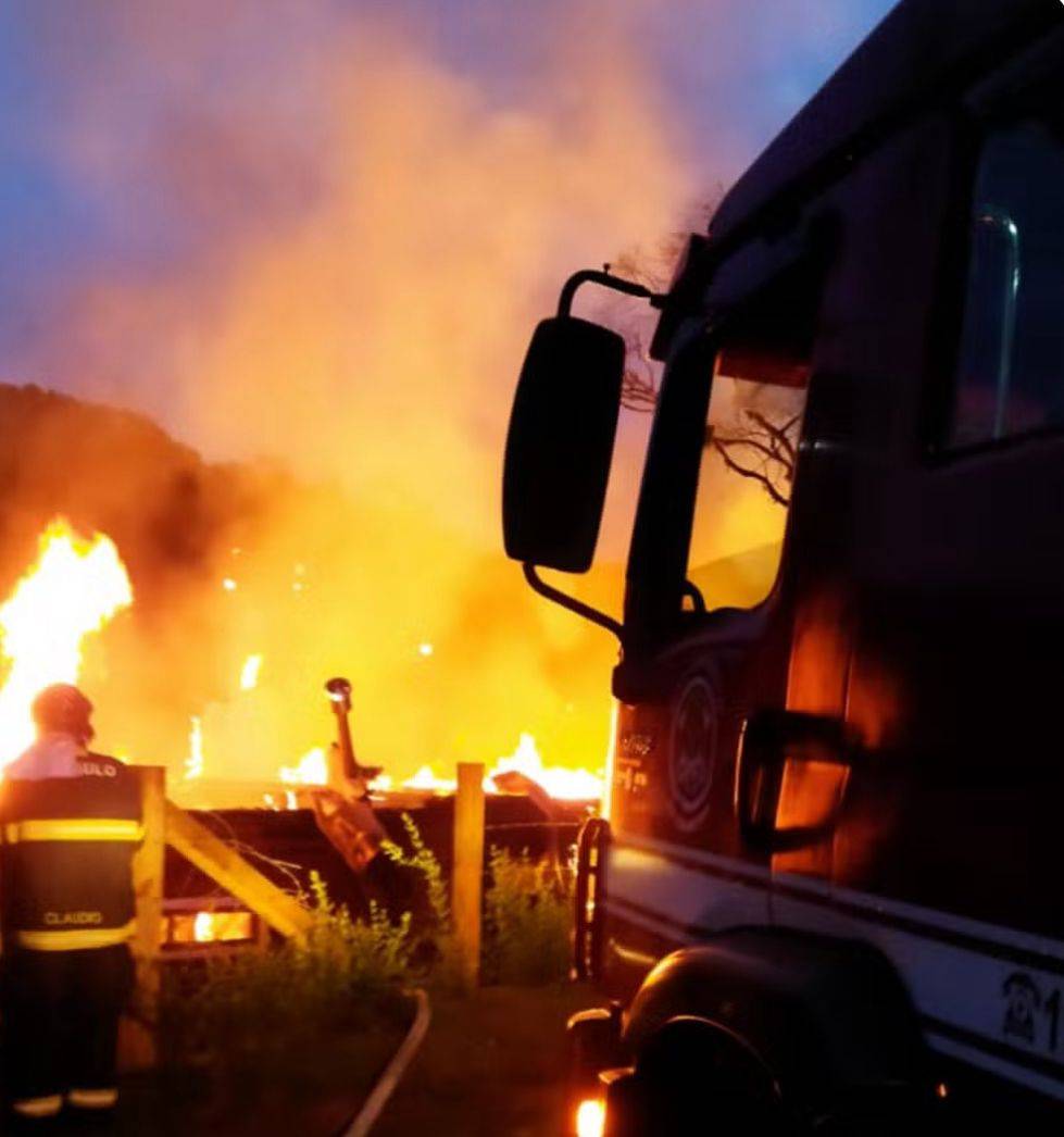 De acordo com os bombeiros, o fogo teve início na chaminé da lareira. Os ocupantes conseguiram deixar o imóvel imediatamente após perceberem as chamas.