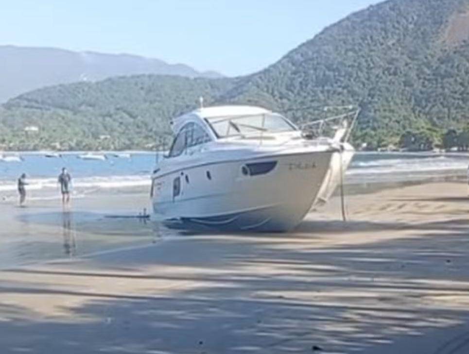 Uma embarcação de 13 metros de comprimento encalhou na madrugada desta sexta-feira (21) na Praia do Lázaro, em Ubatuba (SP), após a forte ressaca registrada na região. Apesar do susto, ninguém ficou ferido.
