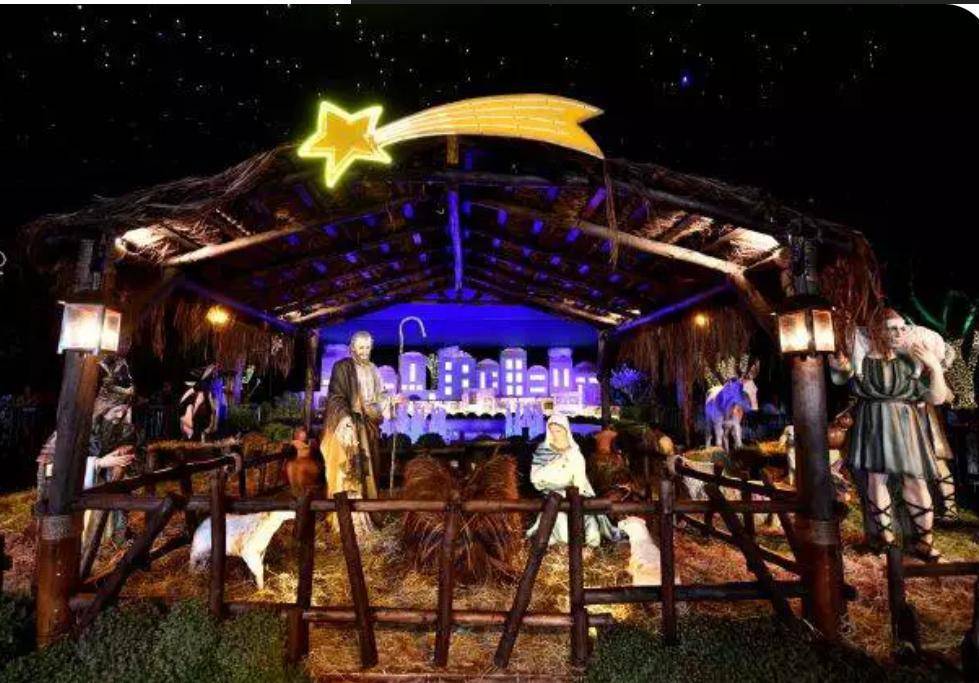 A decoração especial também foi pensada para criar um ambiente de contemplação e acolhimento aos visitantes. Uma grande estrela, luzes e elementos vivos compõem o cenário que deve atrair milhares de romeiros ao Jardim Norte, local onde o presépio será abençoado.